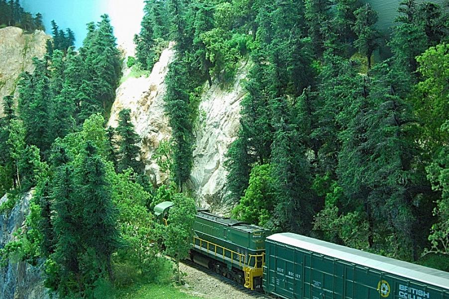 This is the same train seen through the trees with a green color shift. I like this view but I am not sure about the color.