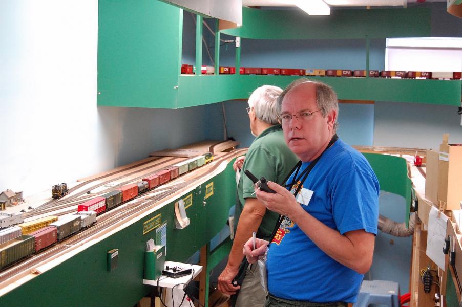 This Greg Madsen photo shows Allen Frasch with the southbound sweeper pulling a block from his train. Scott Buckley is waiting to return to Lillooet with the BCR transfer.