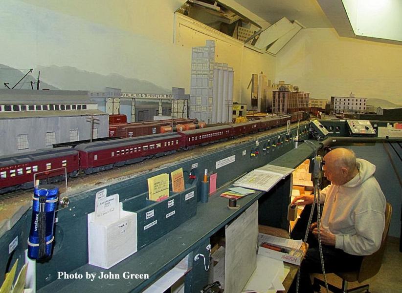 We catch an eastbound on the Canadian Pacific main passing the Harbour's Board area. We also see the yardmaster hard at work. The whole layout is yard limits.