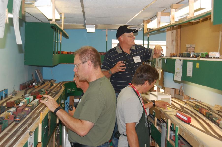 Someone said that yards are like kitchens, everyone gathers there. Here we on the have right in the front Rich is still switching Garibaldi and Ron is turning the Squamish switcher. On the left yardmaster Jarrett is working with Norm who has the North Vancouver Switcher in town.
