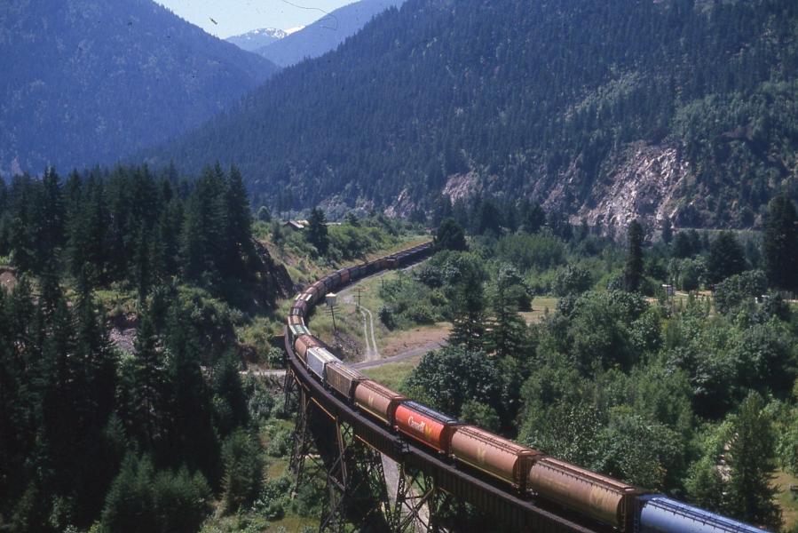 A westbound coal train waits in the siding at Hicks for the eastbound to clear.