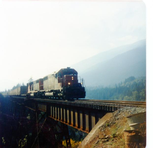 This is a kind of moody shot so I will pretend that I meant to do that. It is an eastbound in the Fraser Canyon somwhere.